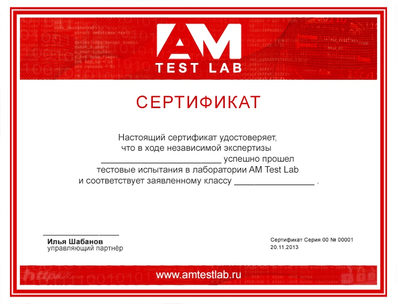 Рисунок 7. Сертификат AM Test Lab (шаблон)