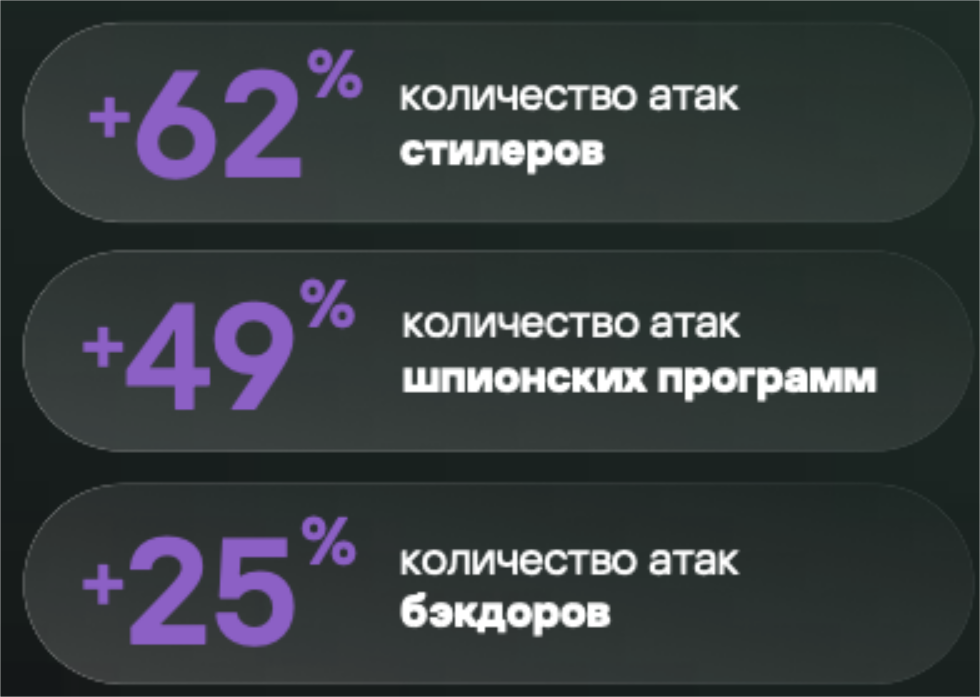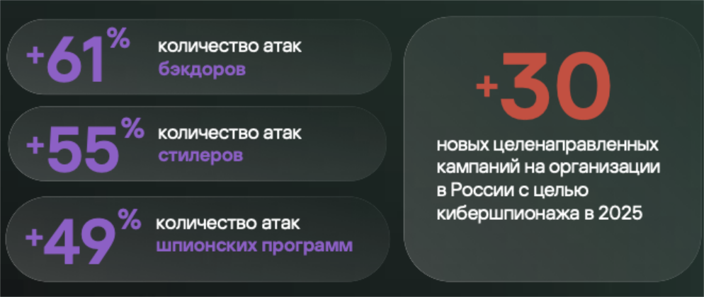 Рисунок 3. Основные индикаторы роста шпионских атак на российских конечных пользователей в 2025 году