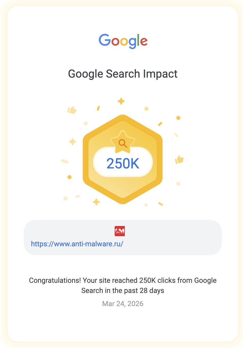 По данным Google, за месяц Anti-Malware.ru генерирует 250 тыс. кликов.