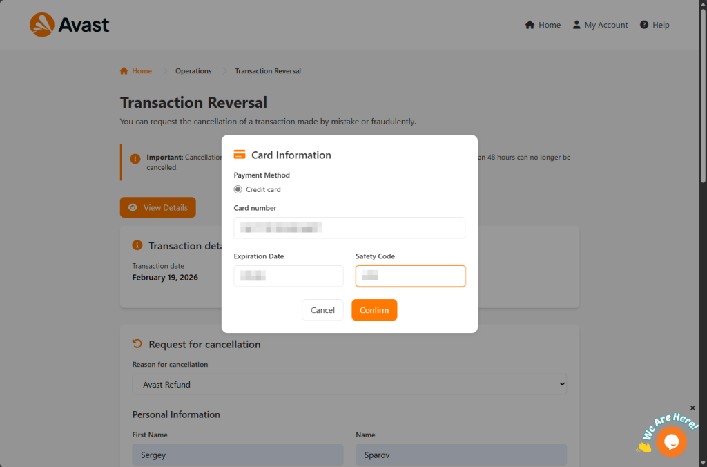 Схема рассчитана на самых разных людей: реальных клиентов Avast, пользователей со старыми подписками, тех, кто никогда не пользовался продуктом, но испугался «списания», и даже тех, кто надеется получить «возврат» без оснований. В любом случае все попадают на одну и ту же форму сбора данных.