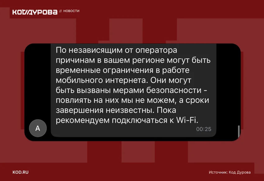 О сбоях сообщил портал «Код Дурова» со ссылкой на собственные источники. Позже информацию подтвердили операторы МТС, Т2 и Т-Мобайл. Они объяснили ограничения в работе связи «мерами безопасности».