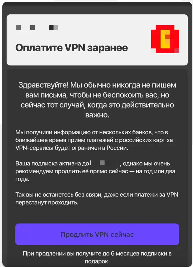 Ещё 10 апреля 2025 года РКН официально рекомендовал владельцам частных VPN по возможности отказаться от иностранных протоколов шифрования, а если это технически невозможно — направить в ЦМУ ССОП данные об IP-адресах, протоколах и целях использования соединения. Для этого ведомство прямо указало специальный адрес электронной почты.