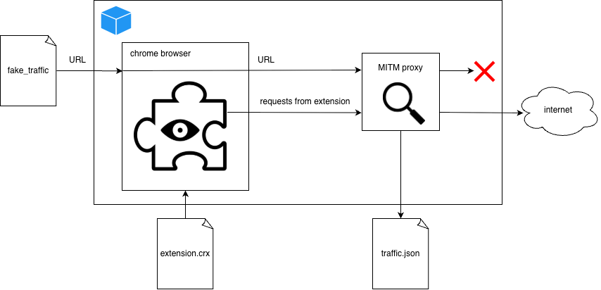 Для этого исследователи запустили Chrome в контейнере Docker, пропустили весь трафик через MITM-прокси и начали открывать специально подготовленные URL-адреса разной длины. Идея была простой: если расширение «безобидное» — например, меняет тему или управляет вкладками — объём исходящего трафика не должен расти вместе с длиной посещаемого URL.