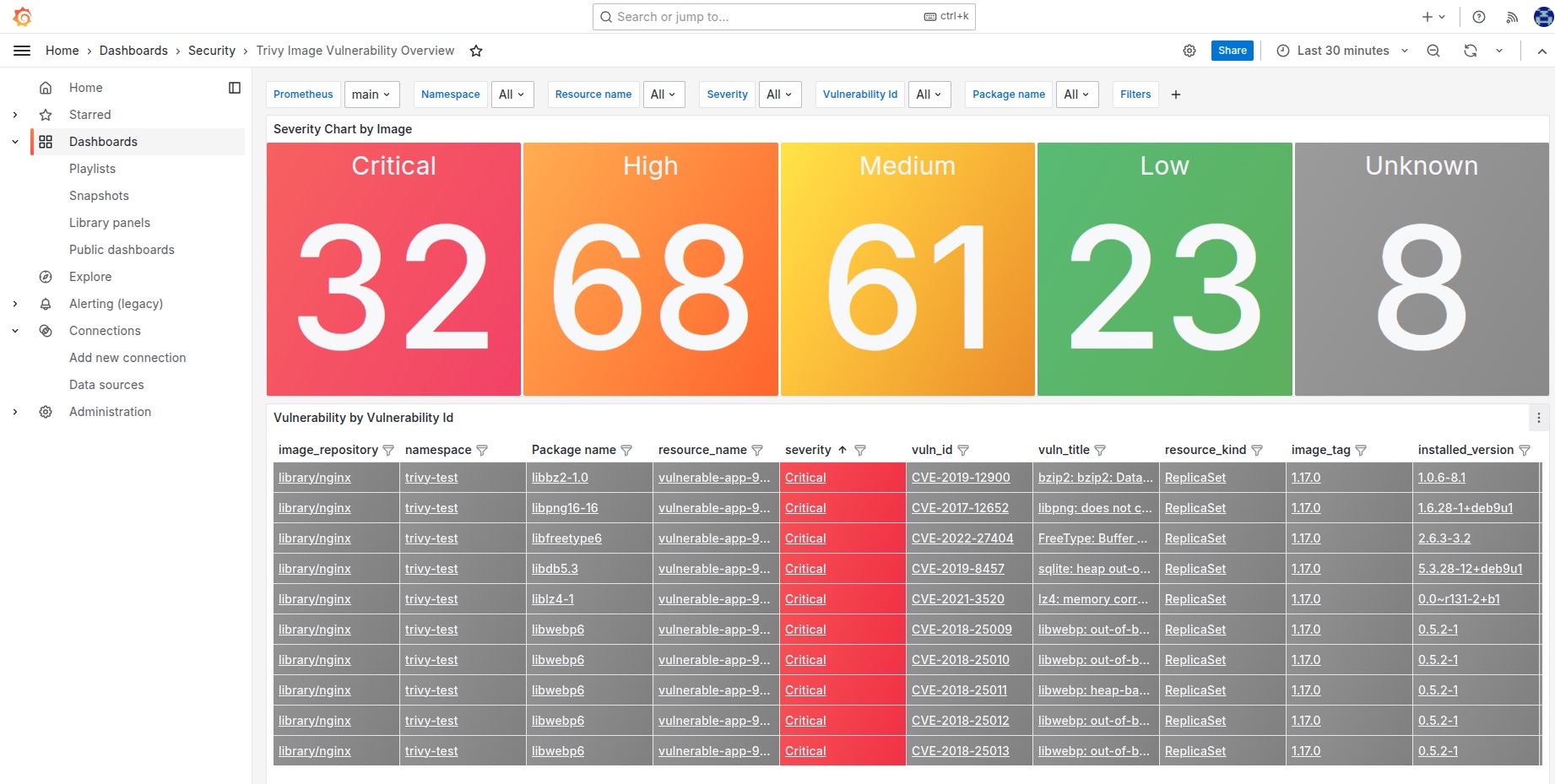 - Автоматический поиск уязвимостей в контейнерных образах на основе проекта Trivy, регулярная проверка образов на известные CVE.