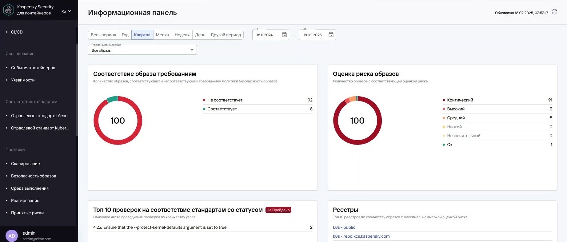 Рисунок 5. Информационная панель Kaspersky Container Security