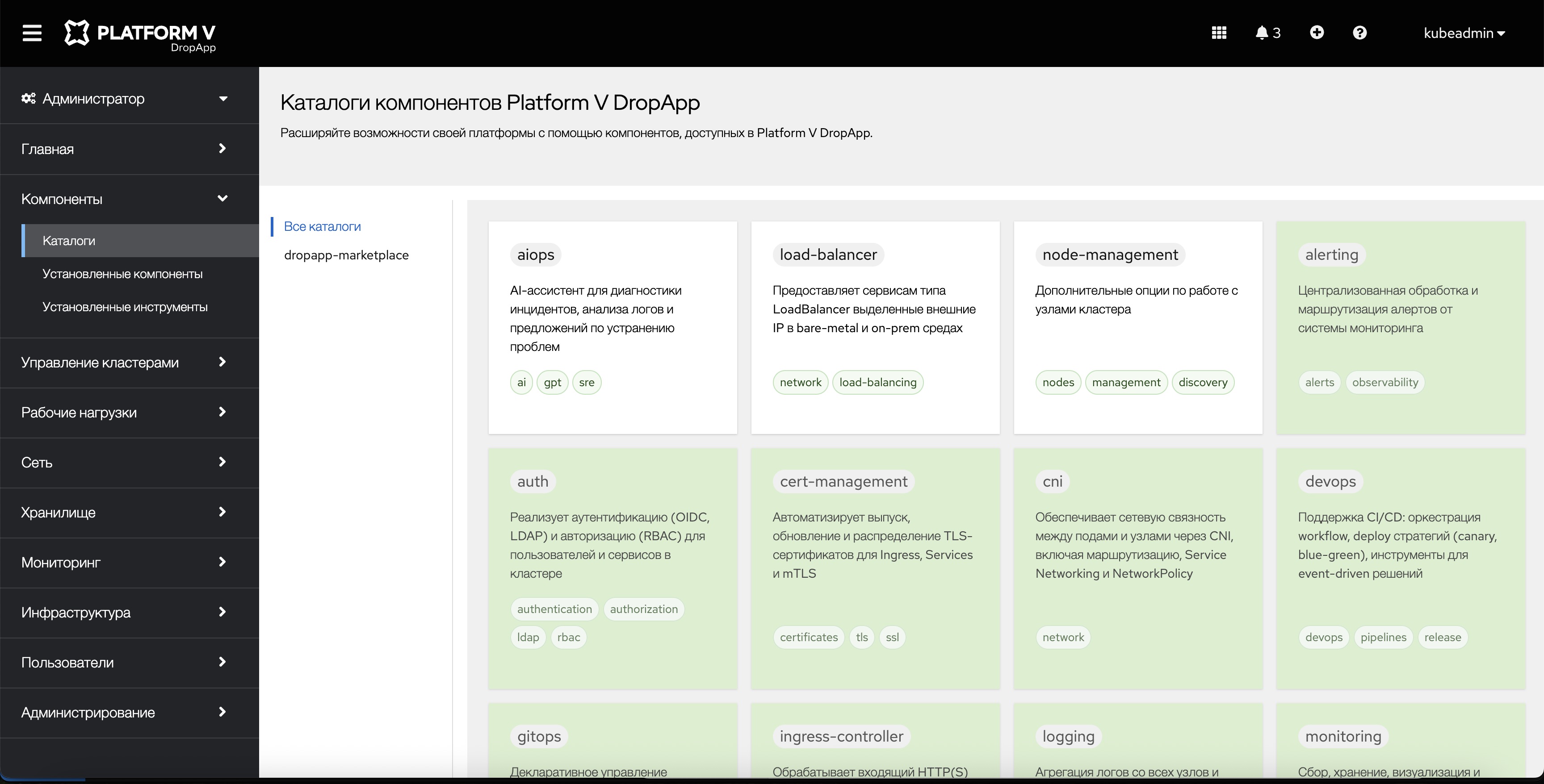 Рисунок 8. Каталог компонентов Platform V DropApp