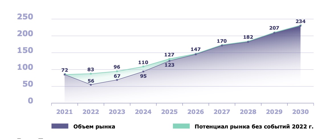 Рисунок 2. Динамика рынка СУБД и средств обработки данных до 2030 года