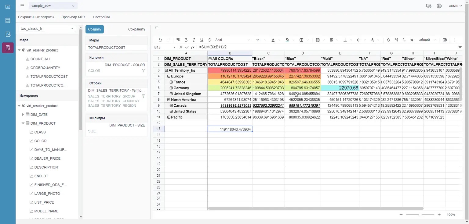 Рисунок 6. Работа с Platfotm V OLAP Analytics через веб-интерфейс