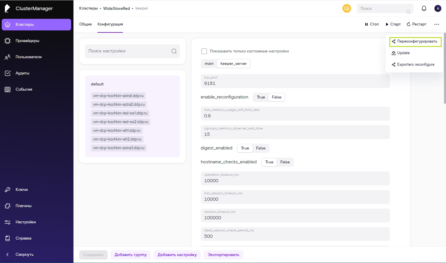 Рисунок 8. Администрирование RT.WideStore с помощью ClusterManager
