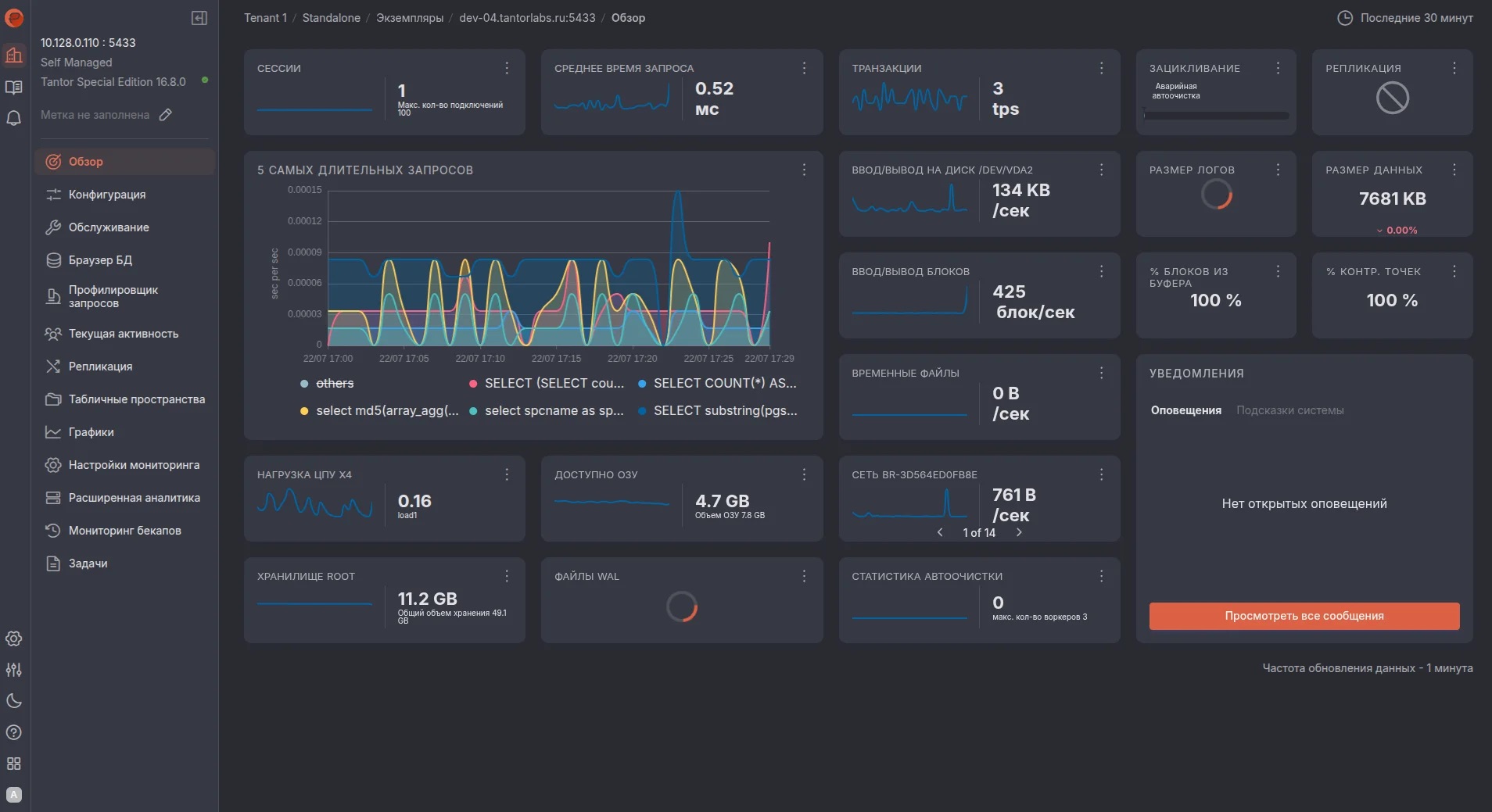 Рисунок 14. Панель управления СУБД Tantor
