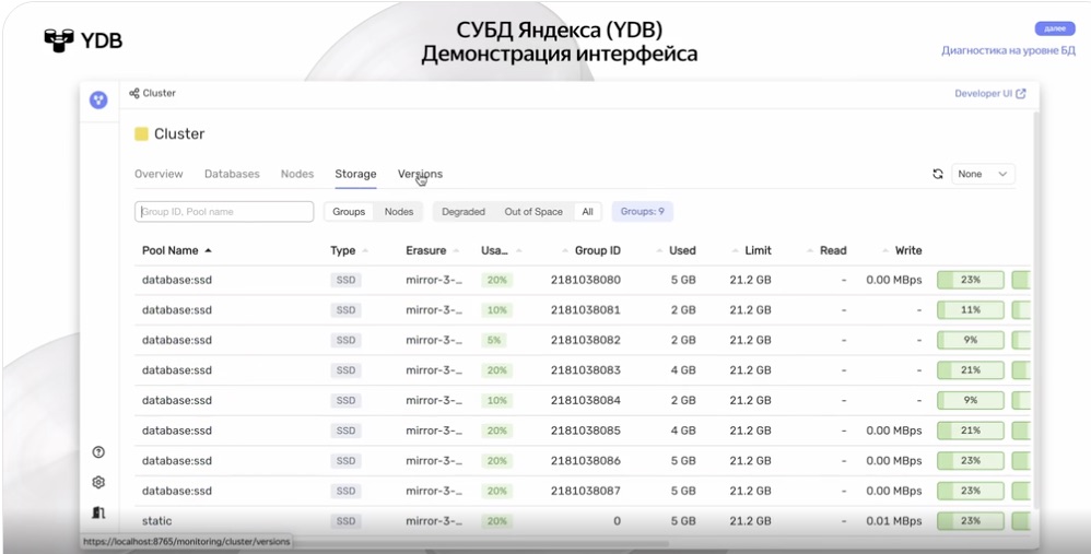 Рисунок 16. Веб-интерфейс управления YDB