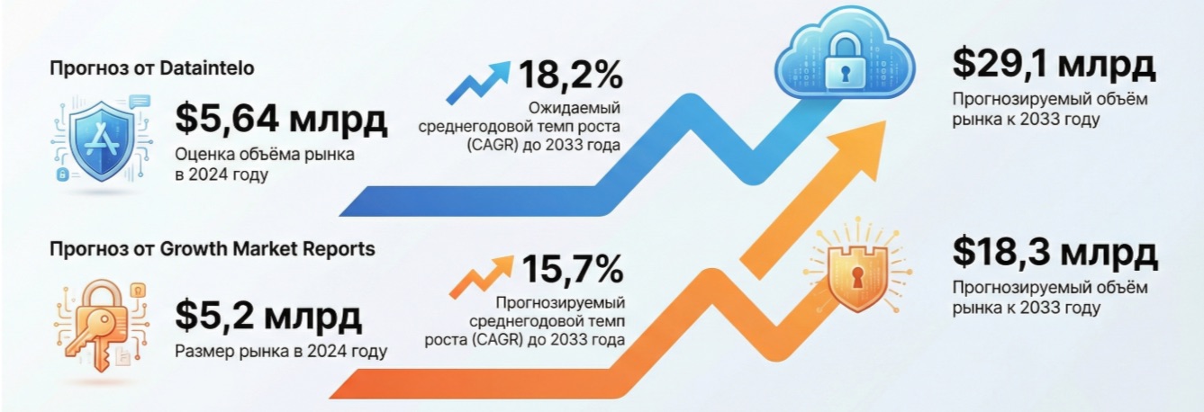 По данным Dataintelo, в 2024 году мировой рынок приложений‑аутентификаторов оценивался примерно в 5,64 млрд долларов США, при этом ожидаемый среднегодовой темп роста (CAGR) составлял около 18,2% до 2033 года. Согласно прогнозам, к концу этого периода объём рынка может достигнуть порядка 29,1 млрд долларов, что отражает устойчивый и стабильный рост спроса на решения для цифровой аутентификации на глобальном уровне.