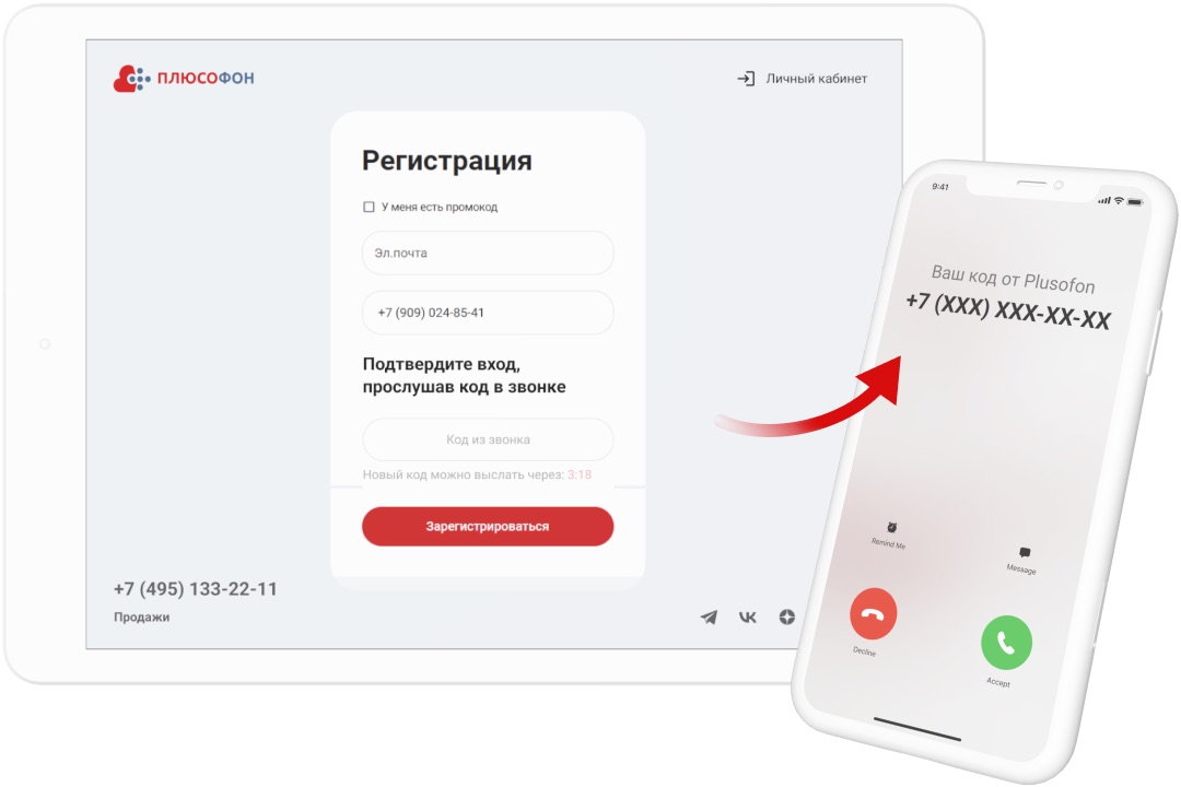 Голосовой Flash Call подходит тем, кто не хочет менять логику авторизации на сайте, в мобильном приложении и желает оставить ввод кода в поле формы.