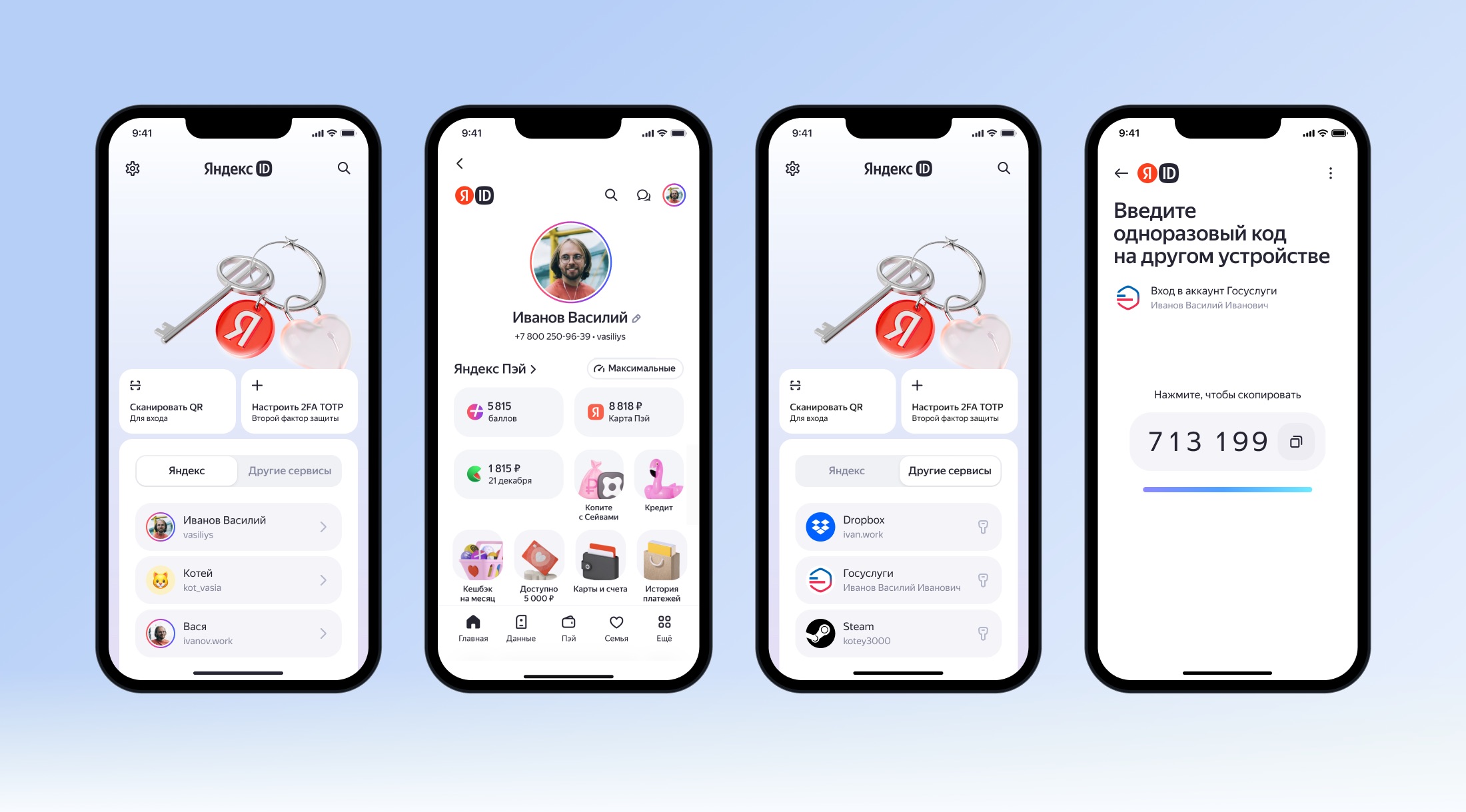Яндекс ID — это приложение, которое позволяет входить в сервисы Яндекса удобным способом, управлять своими данными и подписками. Объединяет аутентификатор, генератор кодов, менеджер паролей и личный кабинет ID. Пришло на смену Яндекс Ключа.
