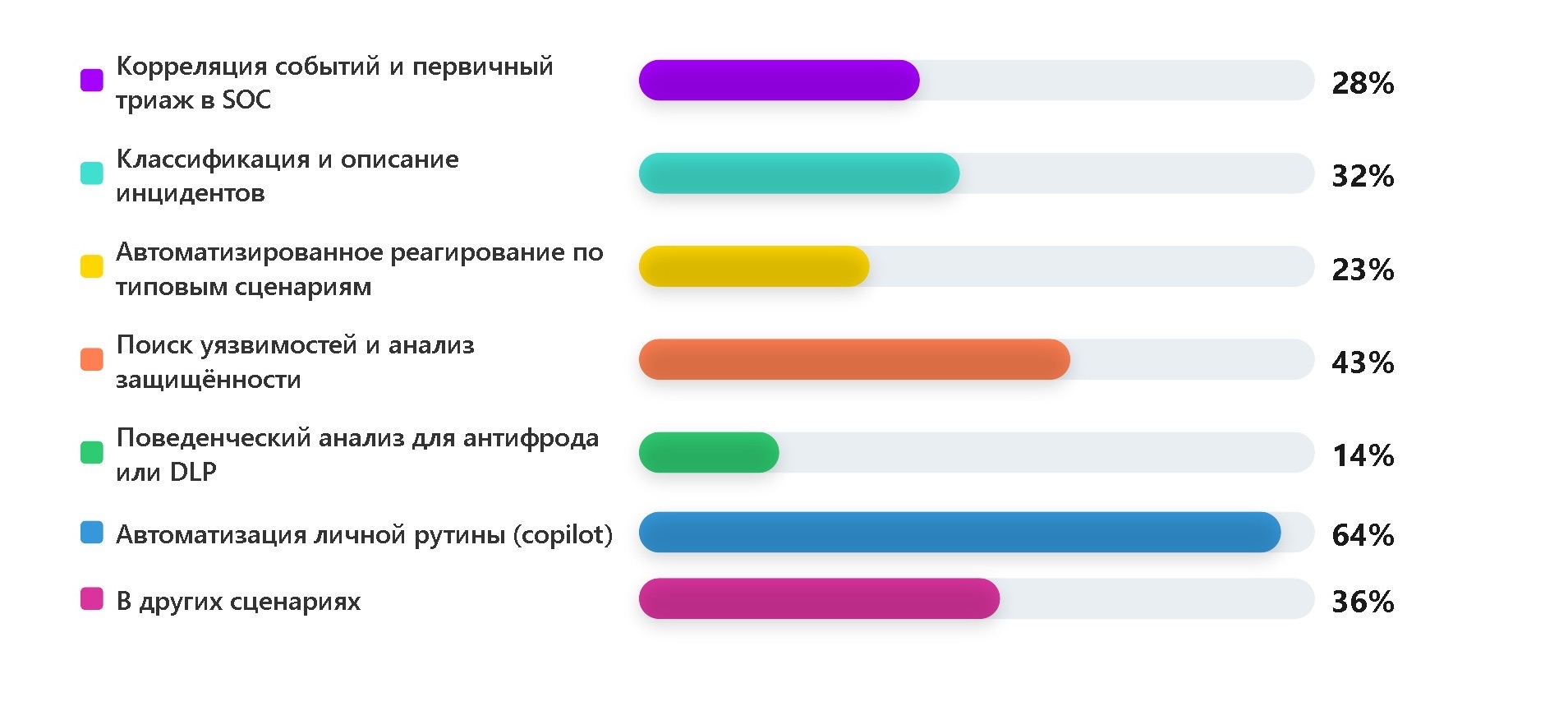 - Автоматизированное реагирование по типовым сценариям — 23 %.