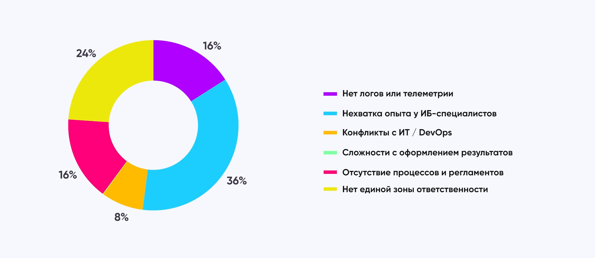 - Нехватка опыта у ИБ-специалистов — 36 %.
