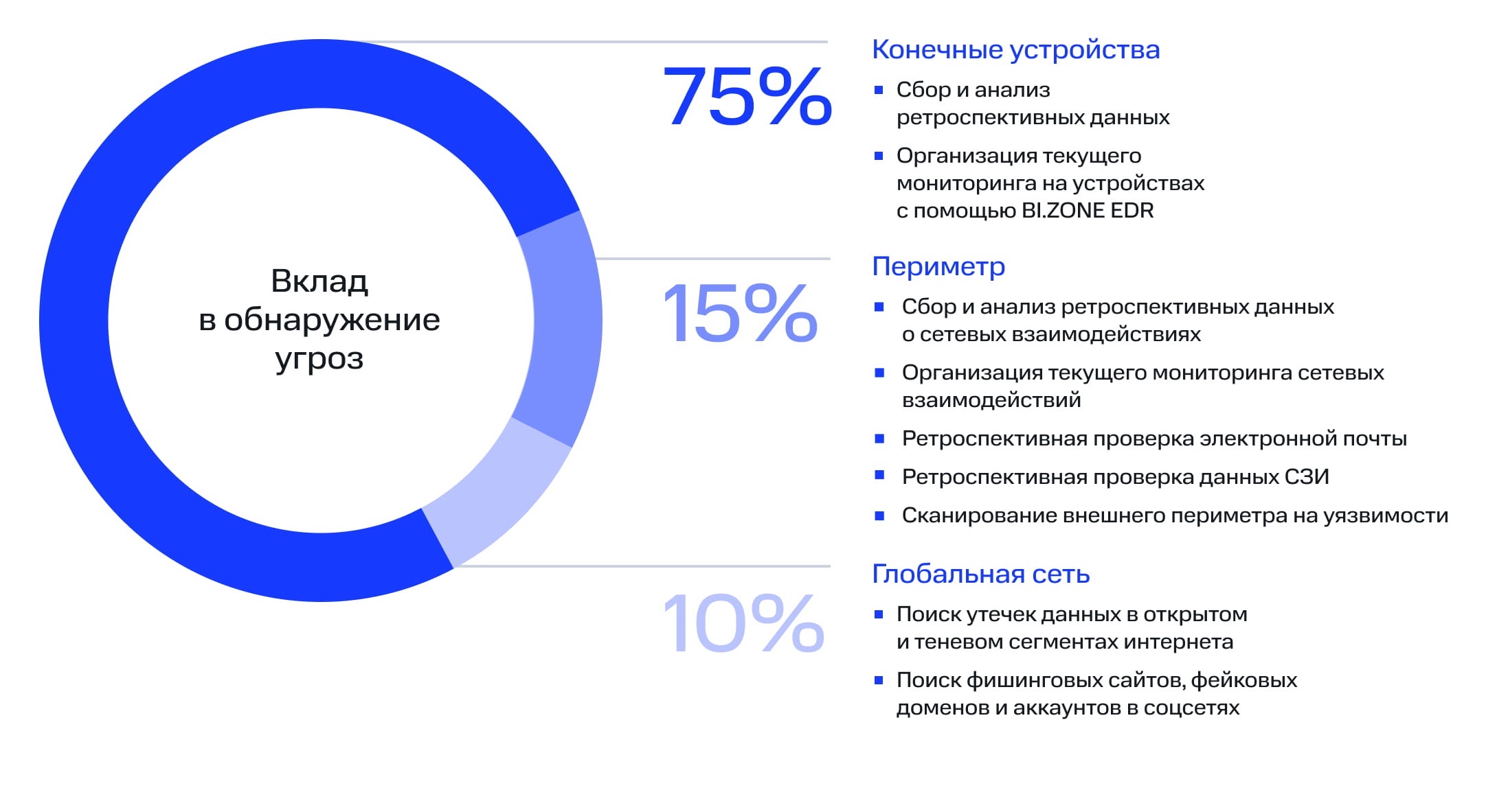 - Минимизация ложноположительных срабатываний. Для этого все подозрительные события проверяют аналитики третьей линии (L3).