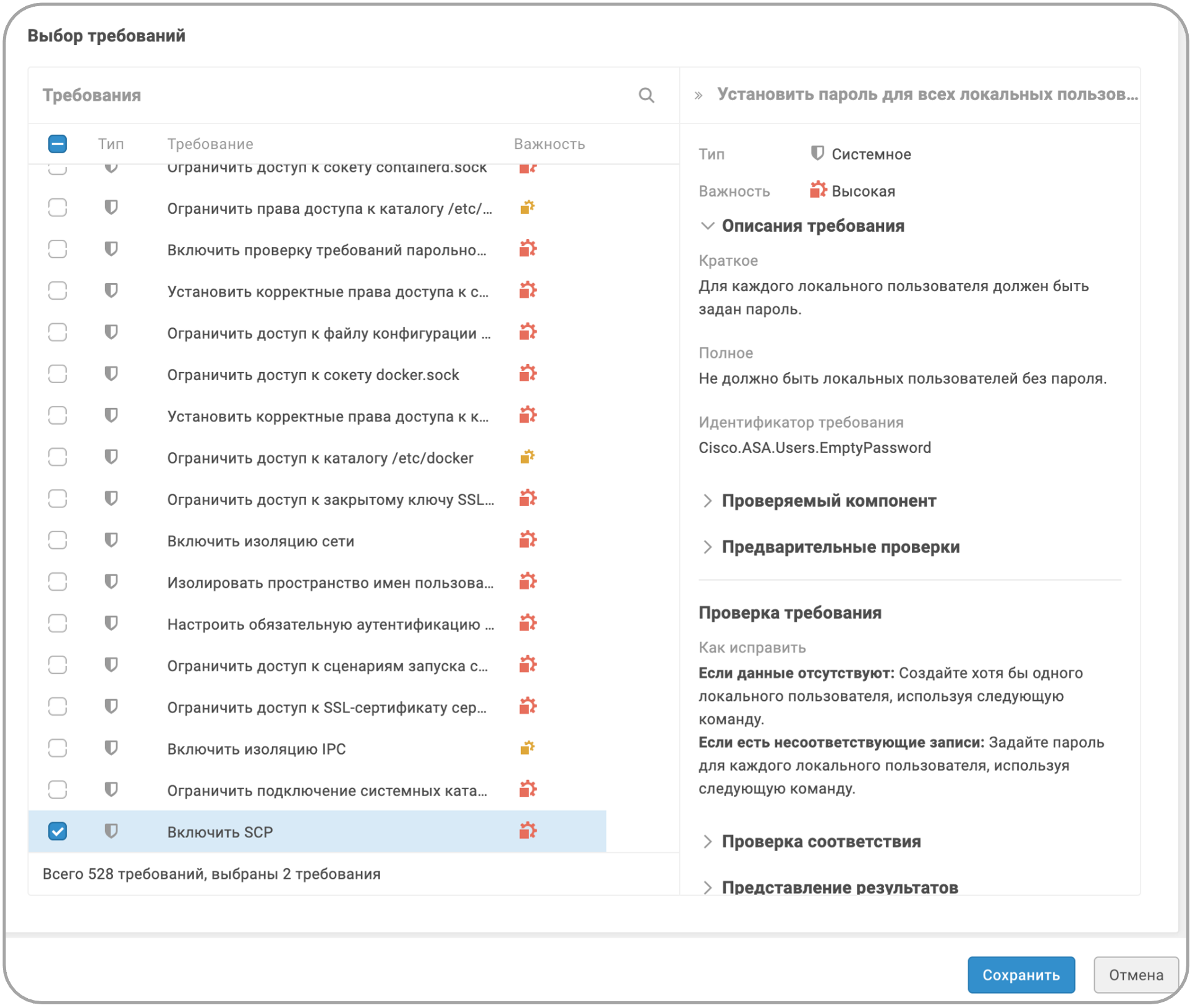 Рисунок 3. Выбор требований в MaxPatrol HCC