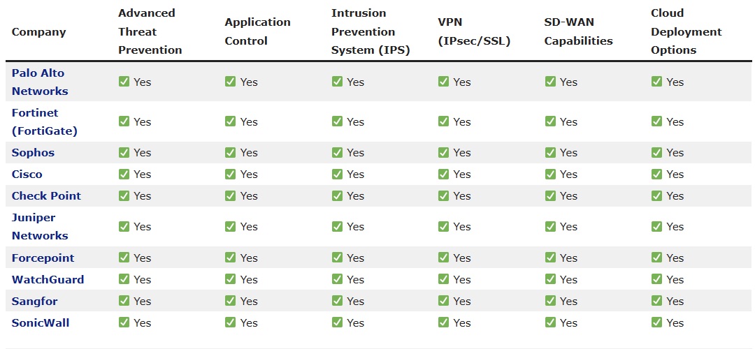Gartner выделяет в своём «магическом квадранте» следующие показатели для отбора моделей западных вендоров NGFW: