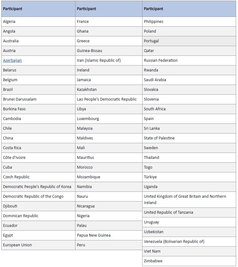 Тем не менее пока рано говорить, что некоторые страны отказались от участия. Свою подпись ещё может поставить любое государство, сделав это не позднее 31 декабря 2026 года в штаб-квартире ООН в Нью-Йорке (США).