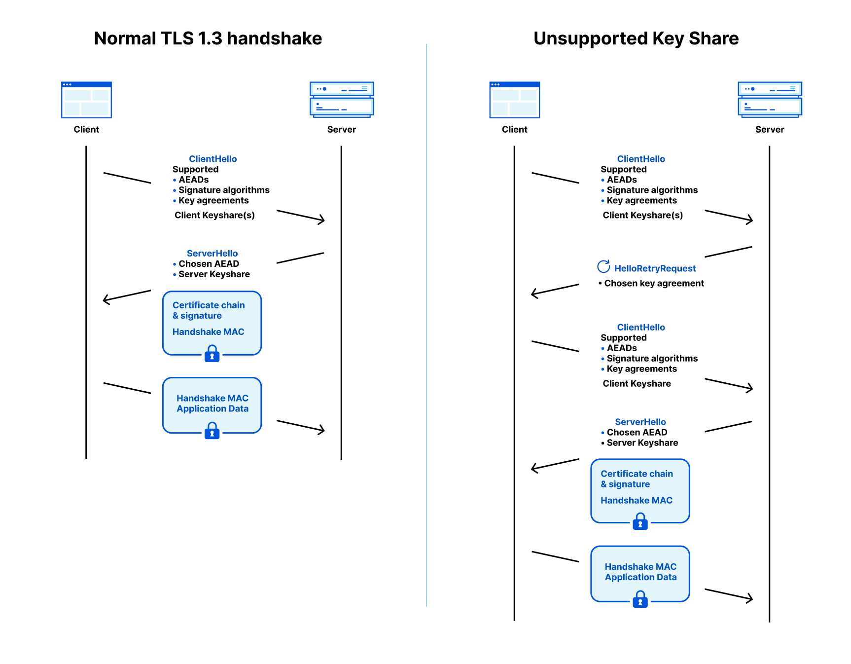 Рисунок 4. Схема рукопожатия TLS 1.3 с гибридным обменом ключами (Источник: Cloudflare)