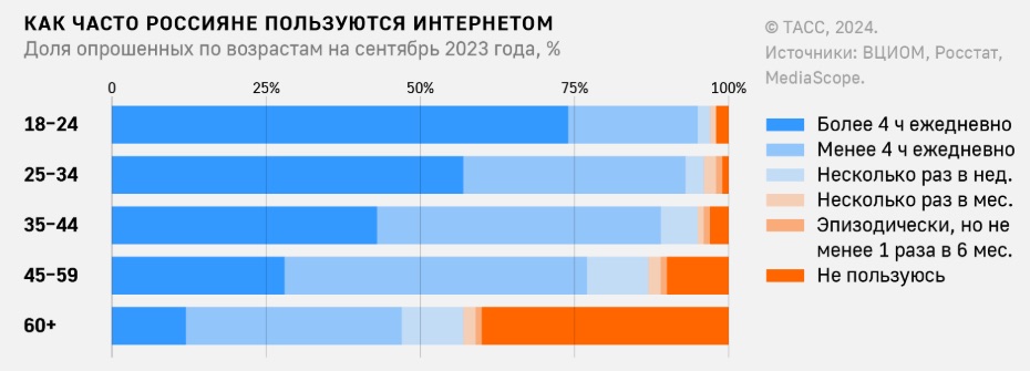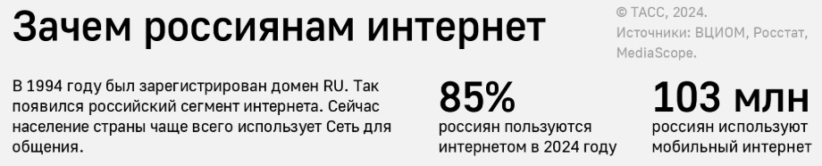 Рисунок 4. Для большинства россиян интернет является важной частью их деятельности (ТАСС, 2024)