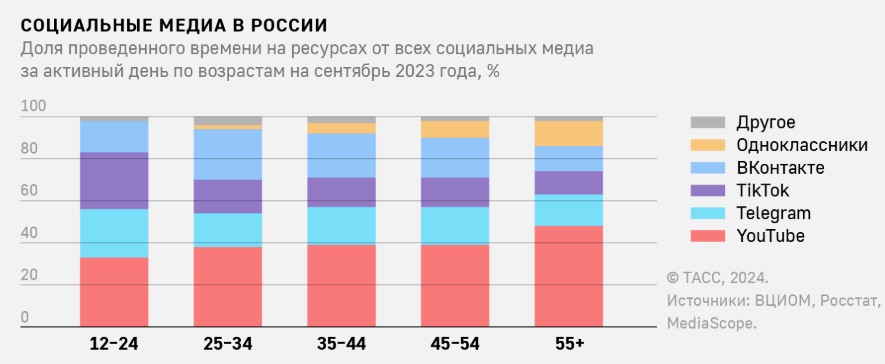 Рисунок 5. Доля ограничиваемых для россиян социальных медиа составляет около 60 % (ТАСС, 2024)