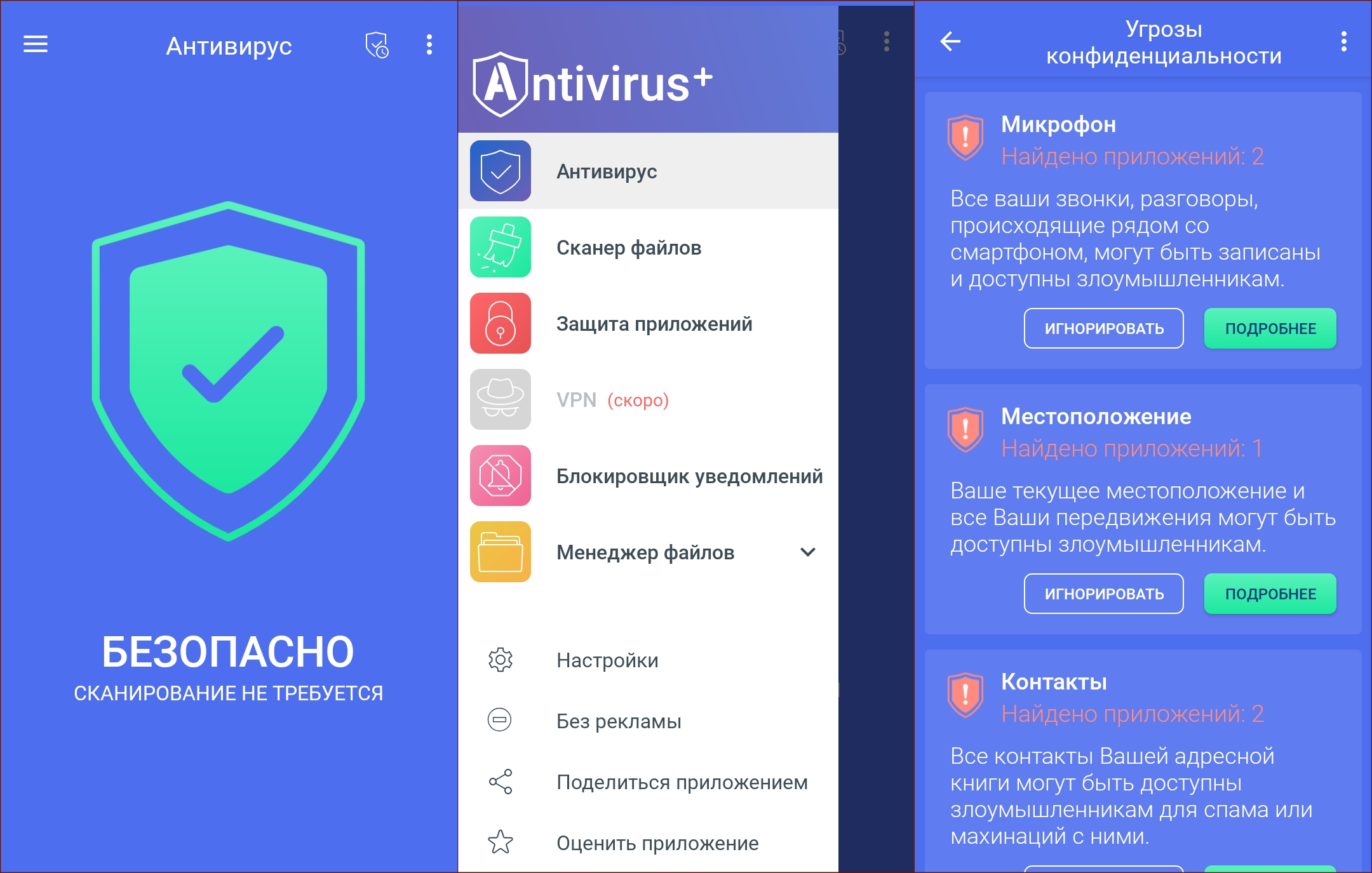 TarrySoft Antivirus производит хорошее впечатление своей функциональностью по части обеспечения конфиденциальности. Продукт даёт сводки о том, какими разрешениями пользуются приложения, и поясняет, какие риски могут быть связаны с предоставлением тех или иных разрешений.