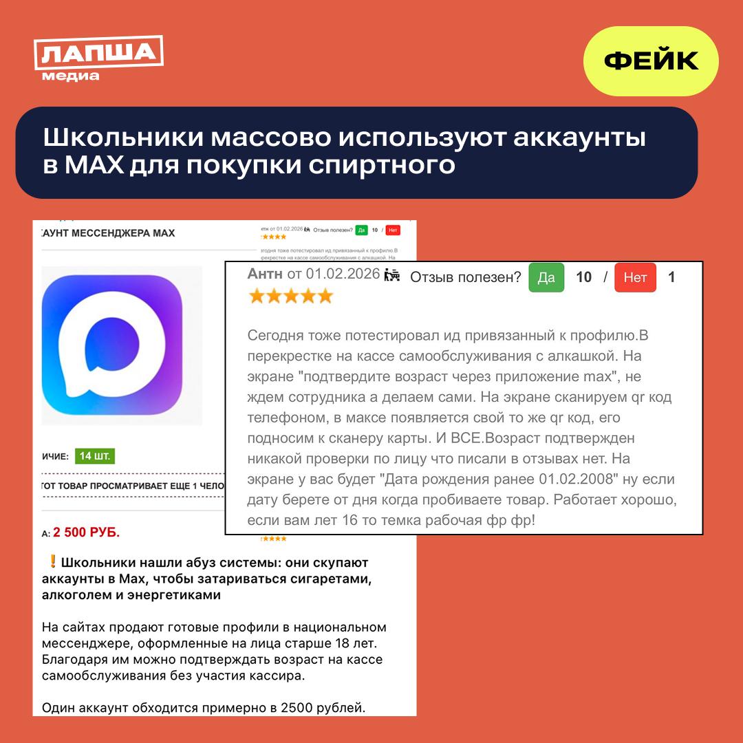 Ранее в мессенджерах и социальных сетях распространились публикации от имени якобы подростков, которые рассказывали о покупке товаров с возрастными ограничениями — табачной продукции, алкоголя и энергетиков — через MAX с использованием чужих аккаунтов.