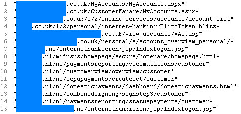 Корпорация Symantec сообщает об угрозе, связанной с банковским трояном Trojan.Neloweg. Вредоносная программа способна украсть данные пользователей, в том числе банковские реквизиты. Изучая данную угрозу, специалисты Symantec обнаружили, что программа может украсть реквизиты пользователей, в том числе банковские. На иллюстрации вы можете видеть часть списка страниц на сайтах банков, попавших под угрозу.