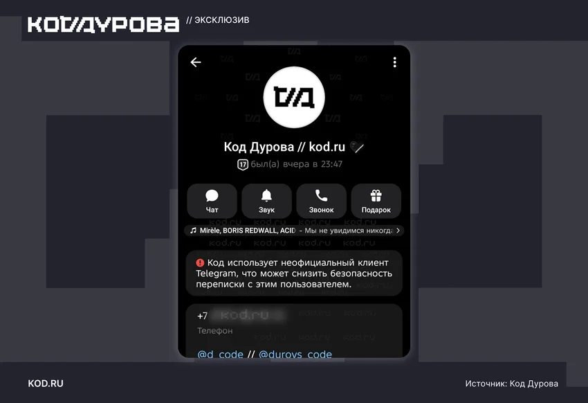 Администрация Telegram анонсировала появление уведомлений о том, что собеседник использует неофициальный клиент. Такое сообщение будет сопровождаться предупреждением о потенциальных рисках для безопасности и конфиденциальности переписки.