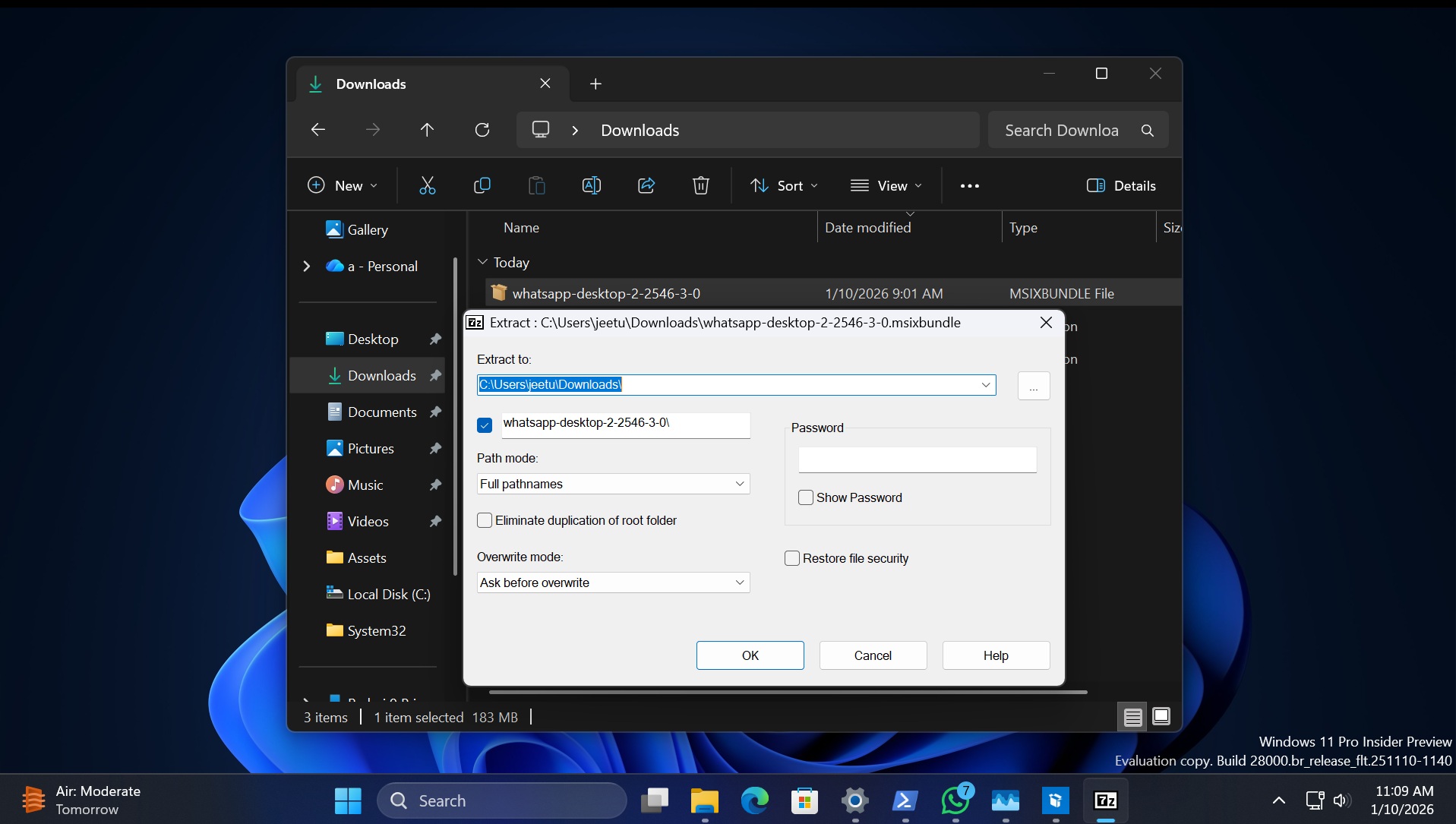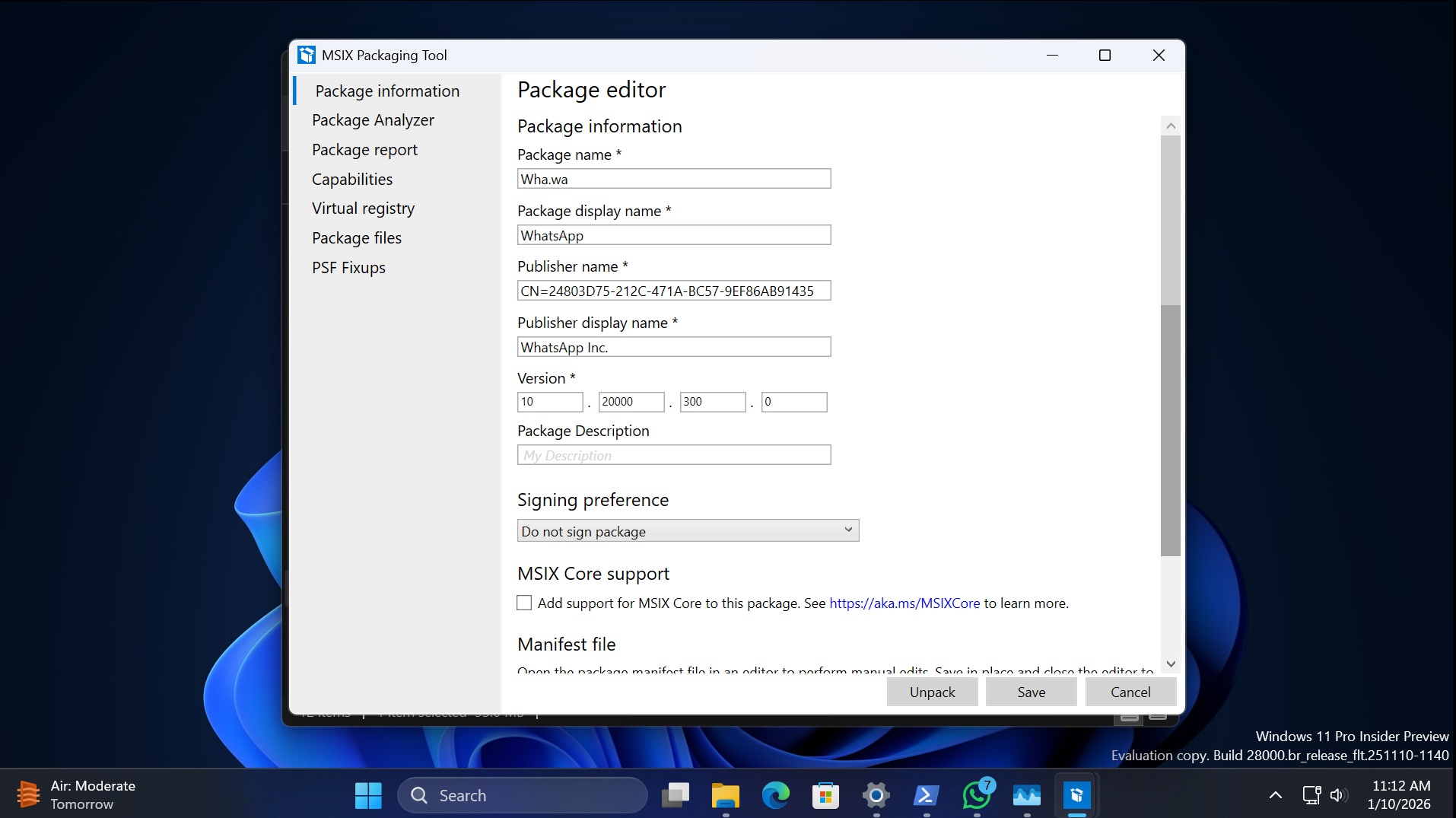 • скачать старый MSIX-пакет WhatsApp (2.2546.3.0) отсюда и приложение MSIX Packaging Tool из Microsoft Store;