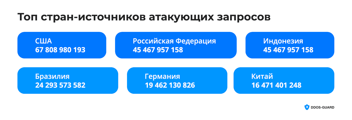 За год также в полтора раза возросла распределенность атак. Рекорд по числу источников мусорного потока поставил крупнейший IoT-ботнет: в проведенной с его участием атаке было задействовано свыше 2 млн уникальных IP. В разделении по странам наибольшее количество источников вредоносного трафика было выявлено в США, России и Индонезии.