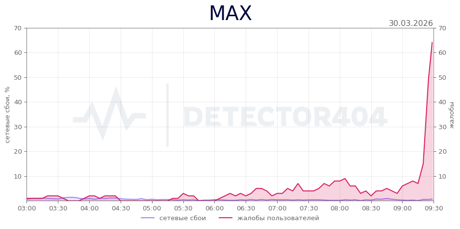 Утро 30 марта у многих пользователей MAX начал сбоить мессенджер. Примерно в 09:28 по московскому времени резко выросло число жалоб на работу сервиса: тысячи людей одновременно сообщили о технических неполадках. Судя по отзывам пользователей, сбой затронул сразу несколько ключевых функций платформы.
