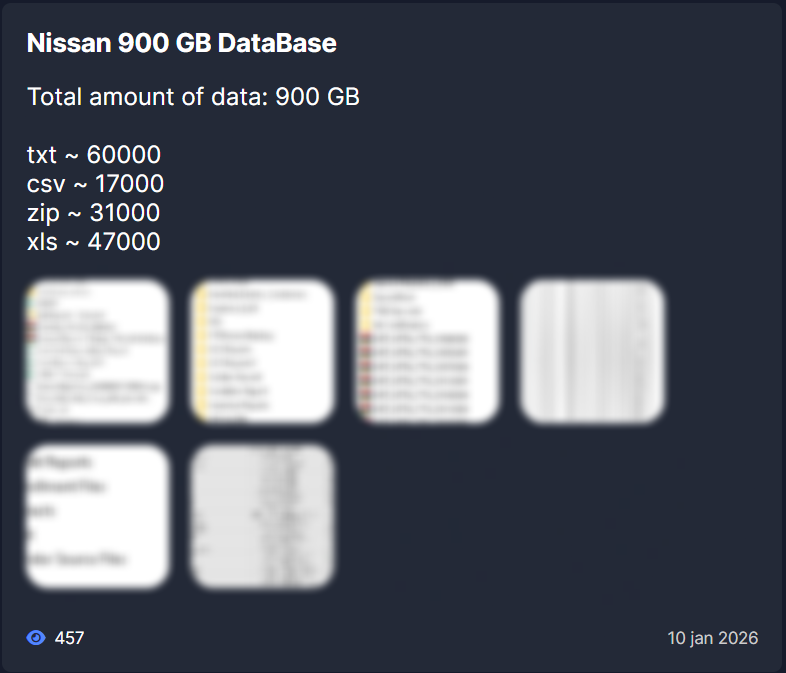 Кибергруппа, стоящая за шифровальщиком Everest, заявила об успешной атаке на Nissan Motor Co., Ltd. и краже 900 Гбайт данных из ее систем. В доказательство злоумышленники опубликовали некие образцы содержимого файлов.