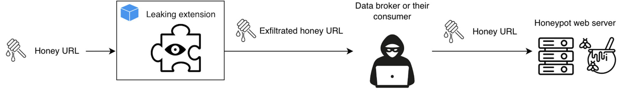 Для этого исследователи запустили Chrome в контейнере Docker, пропустили весь трафик через MITM-прокси и начали открывать специально подготовленные URL-адреса разной длины. Идея была простой: если расширение «безобидное» — например, меняет тему или управляет вкладками — объём исходящего трафика не должен расти вместе с длиной посещаемого URL.
