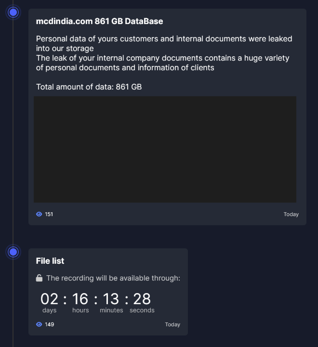 В перечне жертв на сайте утечек кибергруппы Everest в даркнете появилось новое имя — McDonald's. Злоумышленники утверждают, что в ходе атаки им удалось выкачать 861 Гбайт данных из сети представительства компании в Индии.