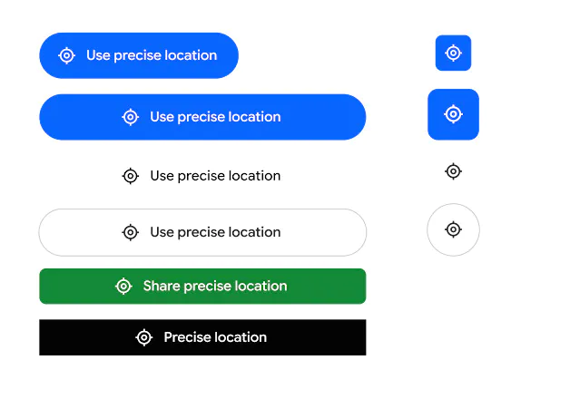 Для разработчиков предусмотрели и возможность настройки внешнего вида кнопки. Можно менять фон, цвет иконки, стиль обводки, размер и форму. При этом сам значок геолокации останется неизменным. Размер шрифта, в свою очередь, будет подстраиваться под системные настройки устройства.