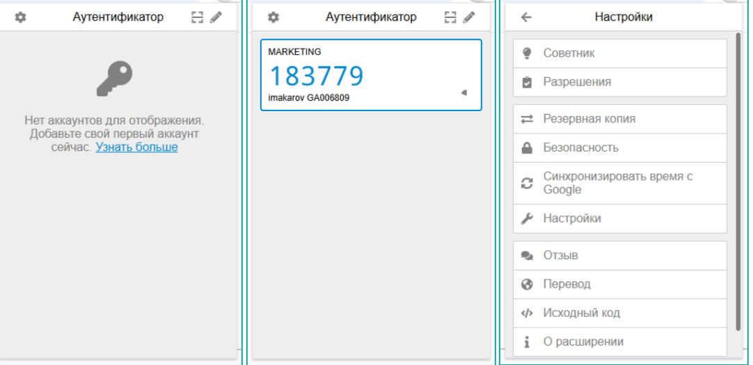 Рисунок 4. Расширение «Аутентификатор» для веб-браузера Google Chrome