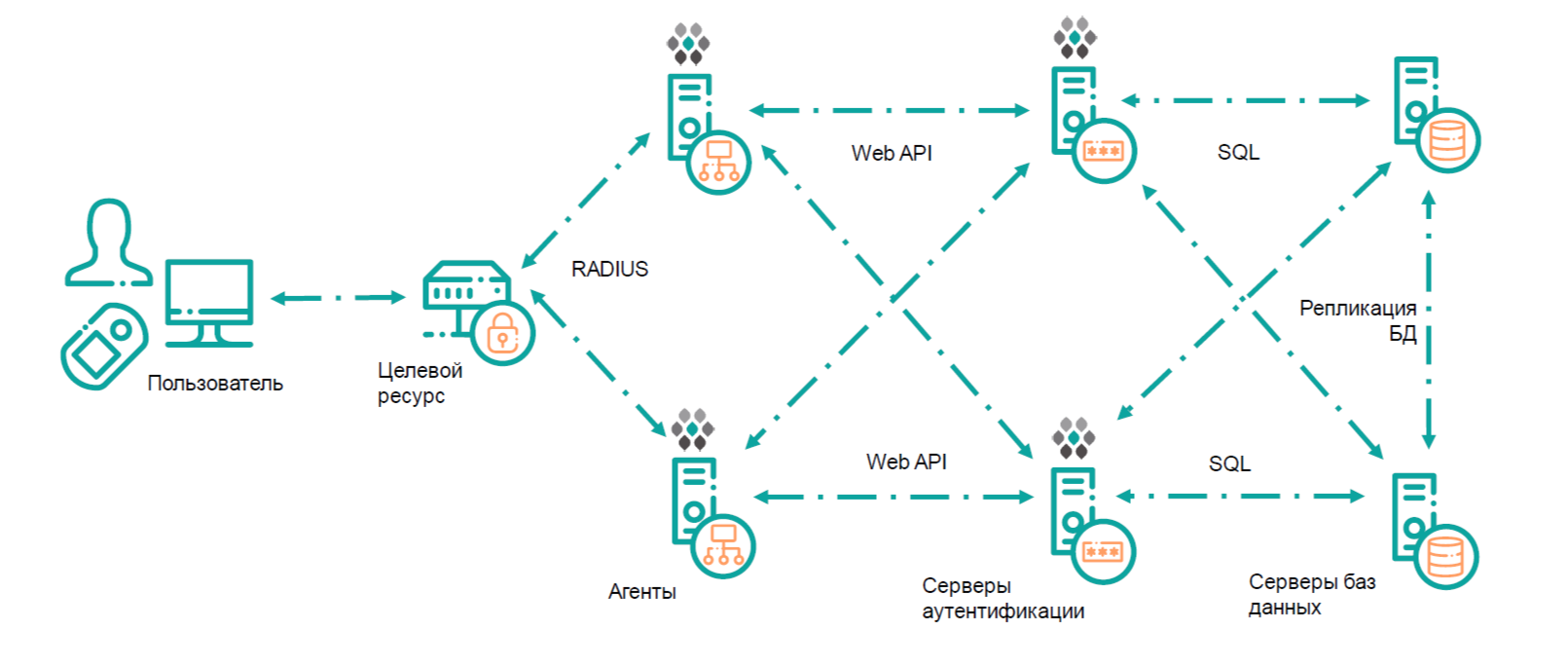 На защищаемые информационные ресурсы (и тем более на клиентские устройства пользователей) никакие компоненты решения не устанавливаются. Достаточно лишь настроить подключение ресурсов к агентам аутентификации.