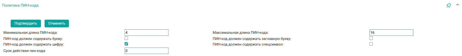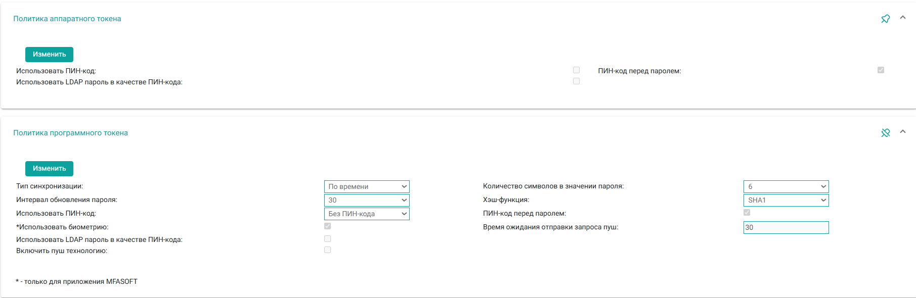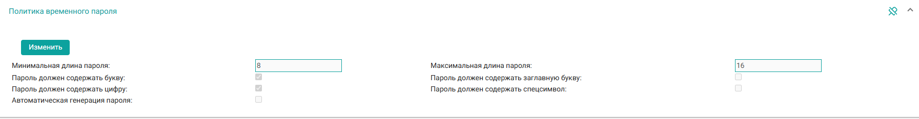 Настройка политики временного кода определяет условия использования временного кода для входа на портал вместо OTP. Политика запросов токенов задаёт, какие типы токенов пользователи могут запрашивать через портал самообслуживания, и определяет список лиц, которые будут одобрять эти запросы.
