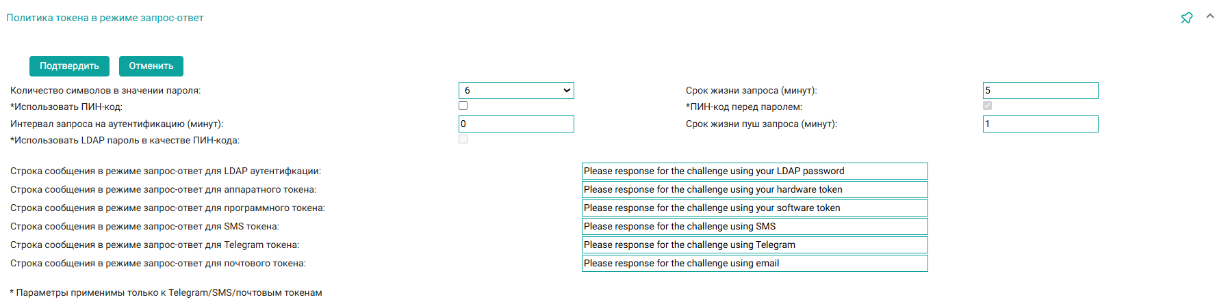 Токены типа «запрос-ответ» обеспечивают доставку одноразового пароля пользователю по различным каналам связи. Поддерживается отправка через SMS, сторонние мессенджеры и телефонные звонки с использованием API внешних сервисов. Также возможна доставка по электронной почте и в мессенджер Telegram с помощью специального бота.