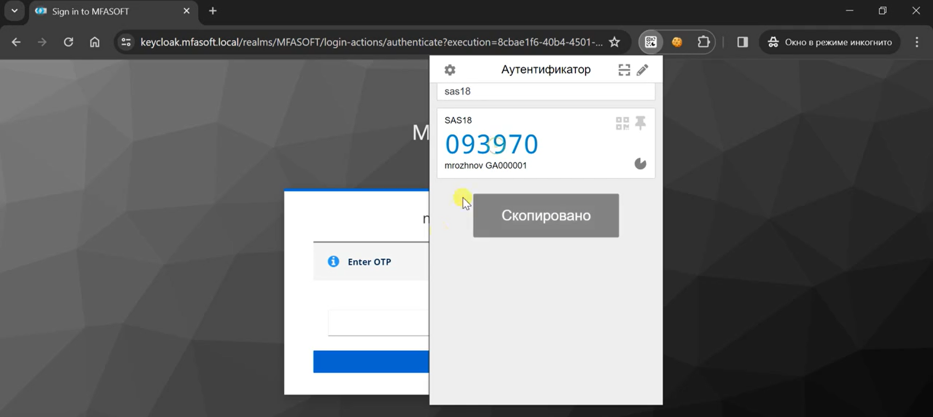 Рисунок 43. Двухфакторная аутентификация с использованием расширения для браузера