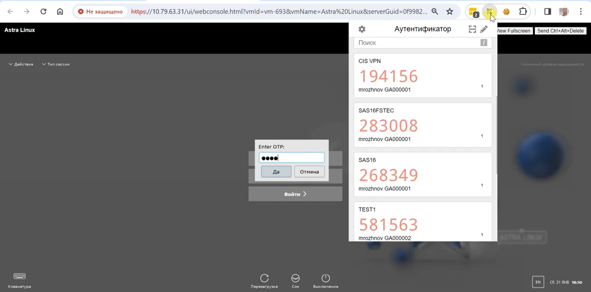 Рисунок 44. Двухфакторная аутентификация в Astra Linux