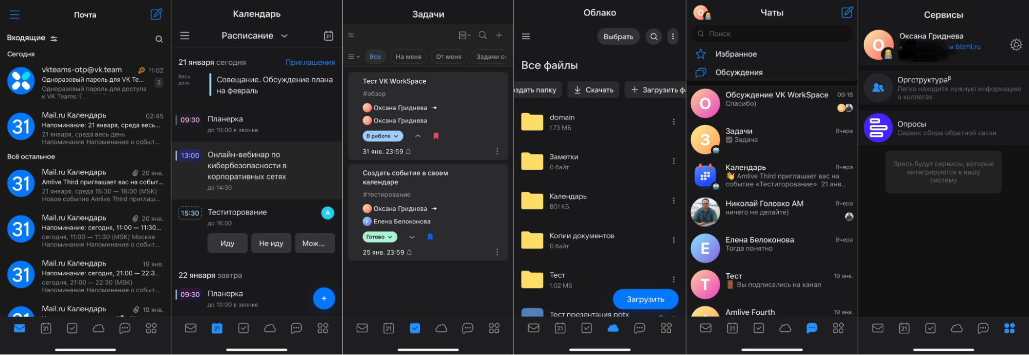 Мы протестировали продукт с точки зрения пользователей, изучили мобильное приложение и десктоп-клиент, а также поработали в браузере. Хотим отметить, что он сохраняет привычную функциональность мессенджера, при этом расширяет возможности работы с почтой, календарём, документами, досками и другими инструментами.