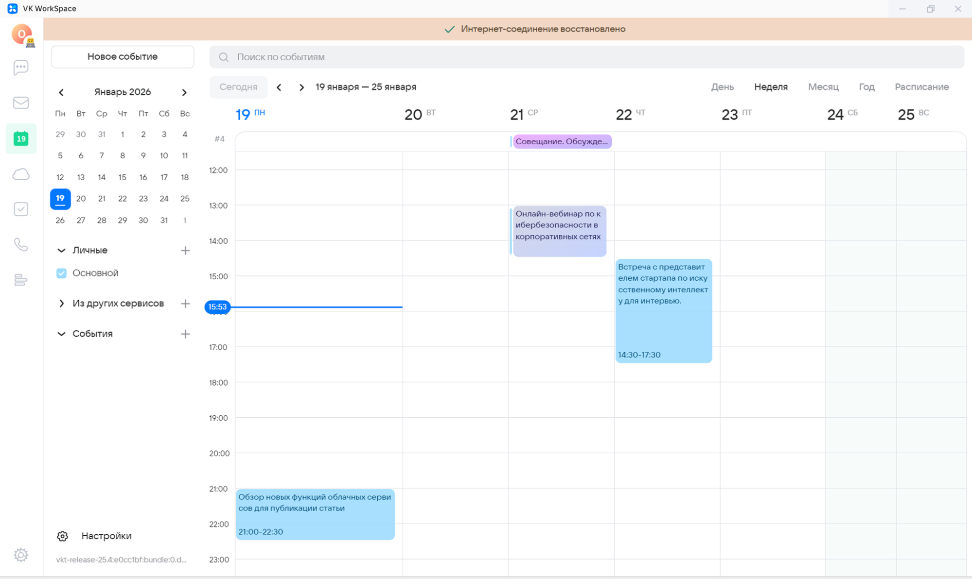 Единое рабочее пространство создано для повышения продуктивности сотрудников: оно минимизирует потерю времени на переключение между разрозненными приложениями и позволяет сосредоточиться на текущих задачах. Работа в закрытом корпоративном контуре исключает отвлечения на личные сообщения и сторонние ресурсы, сохраняя концентрацию на профессиональных процессах. Интуитивно понятный интерфейс повторяет привычные модели взаимодействия корпоративных приложений, что сокращает время на освоение платформы и упрощает повседневное использование всех инструментов.