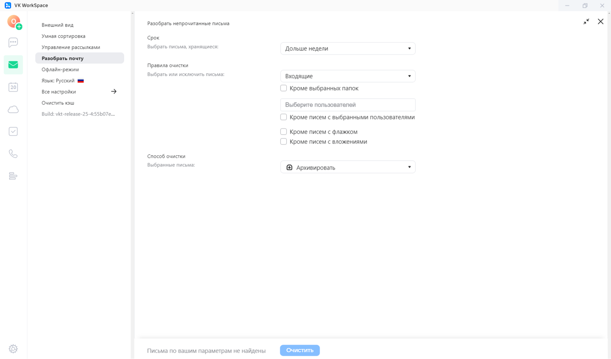 Рисунок 7. Разбор непрочитанных писем в VK WorkSpace