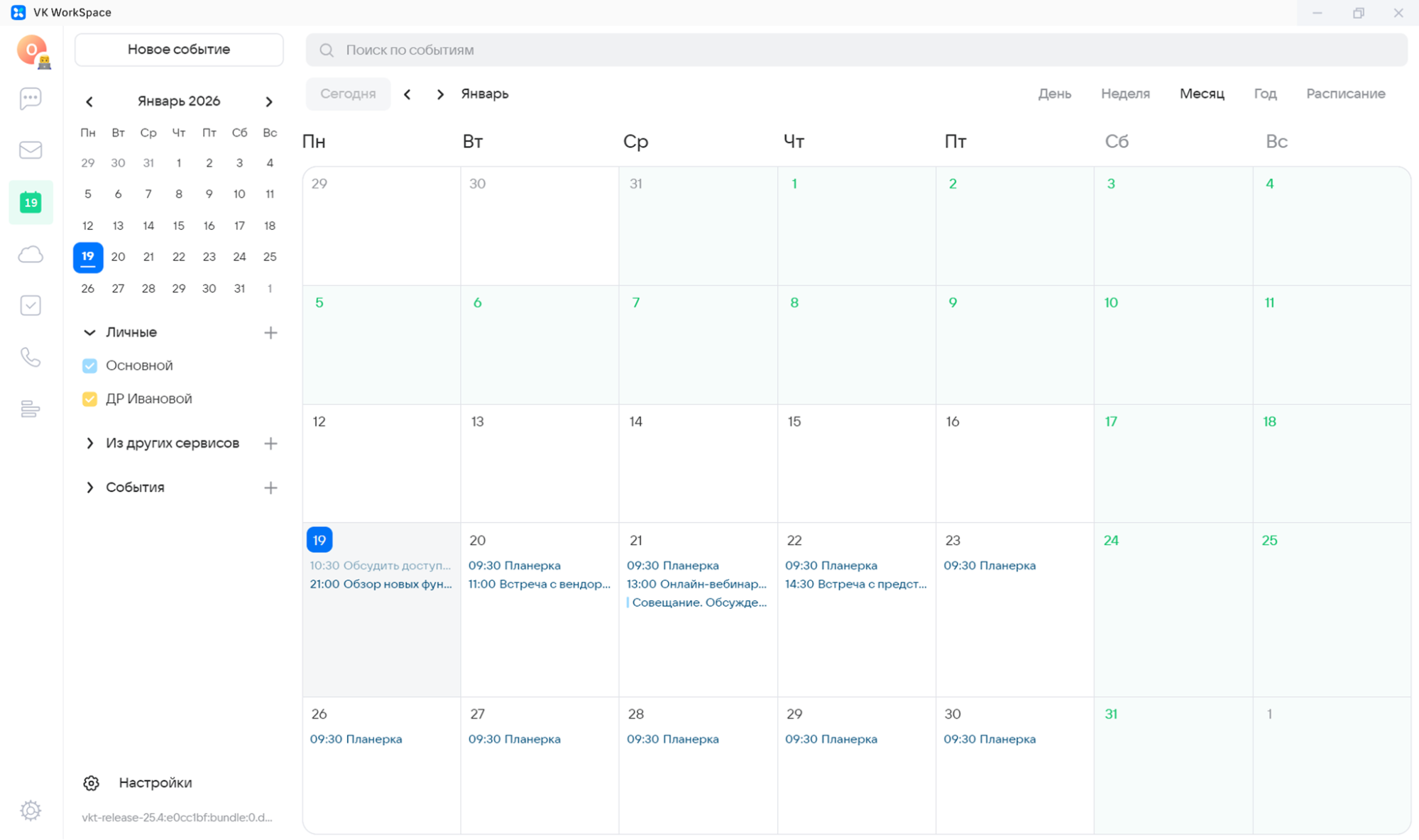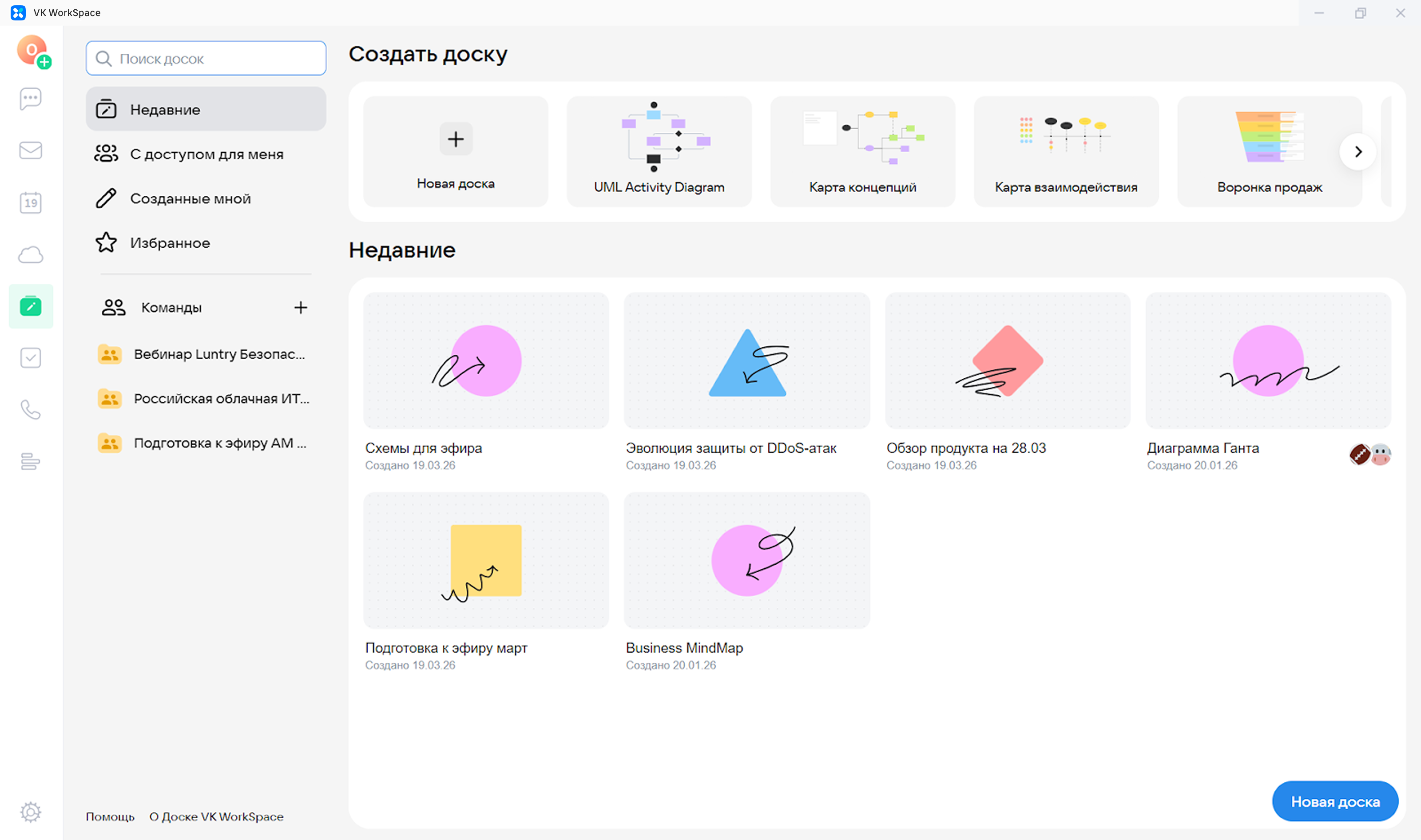 Приложение VK WorkSpace на компьютере