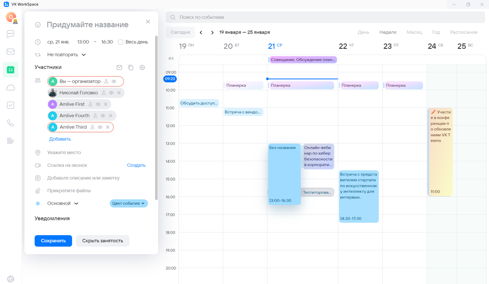 • планирование мероприятий с учётом занятости коллег;