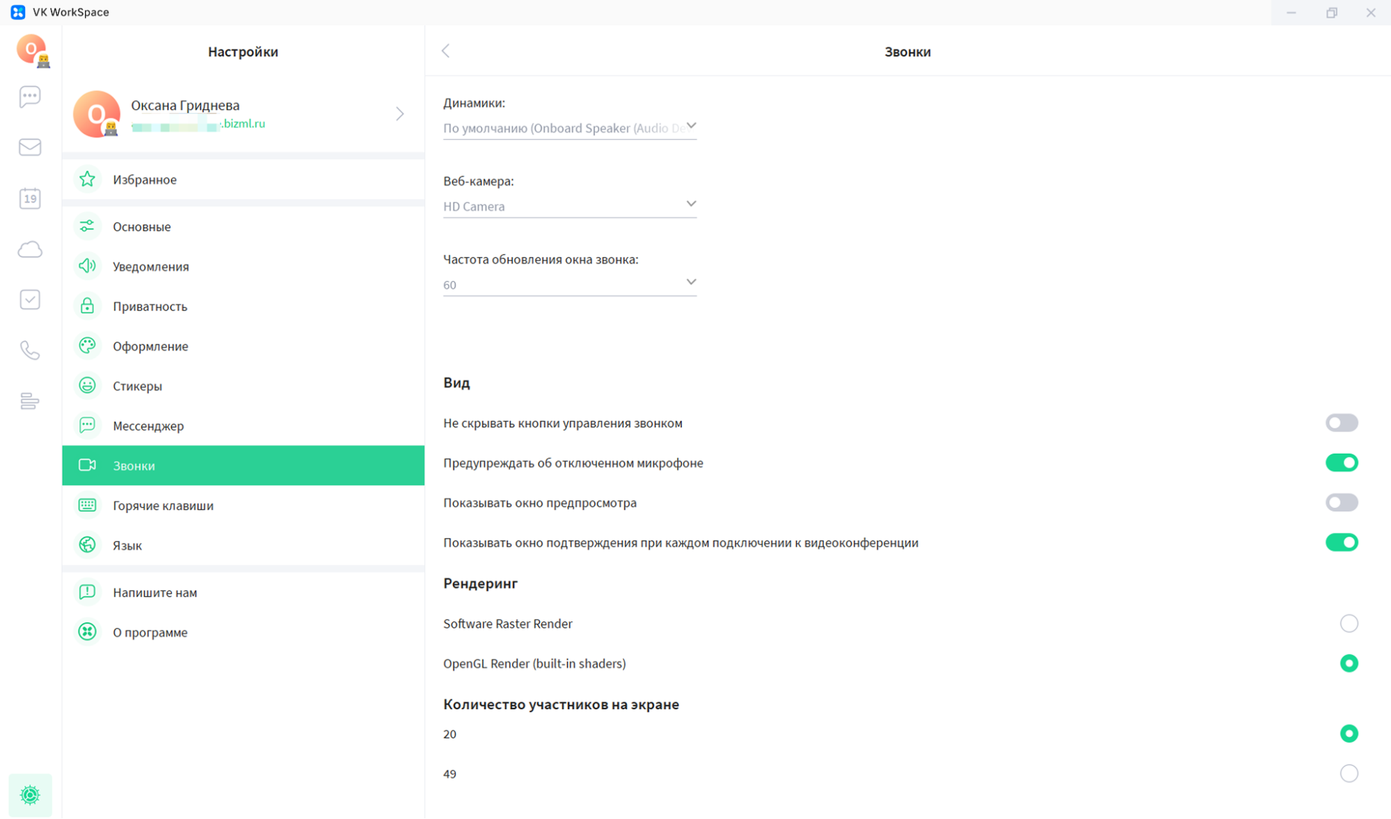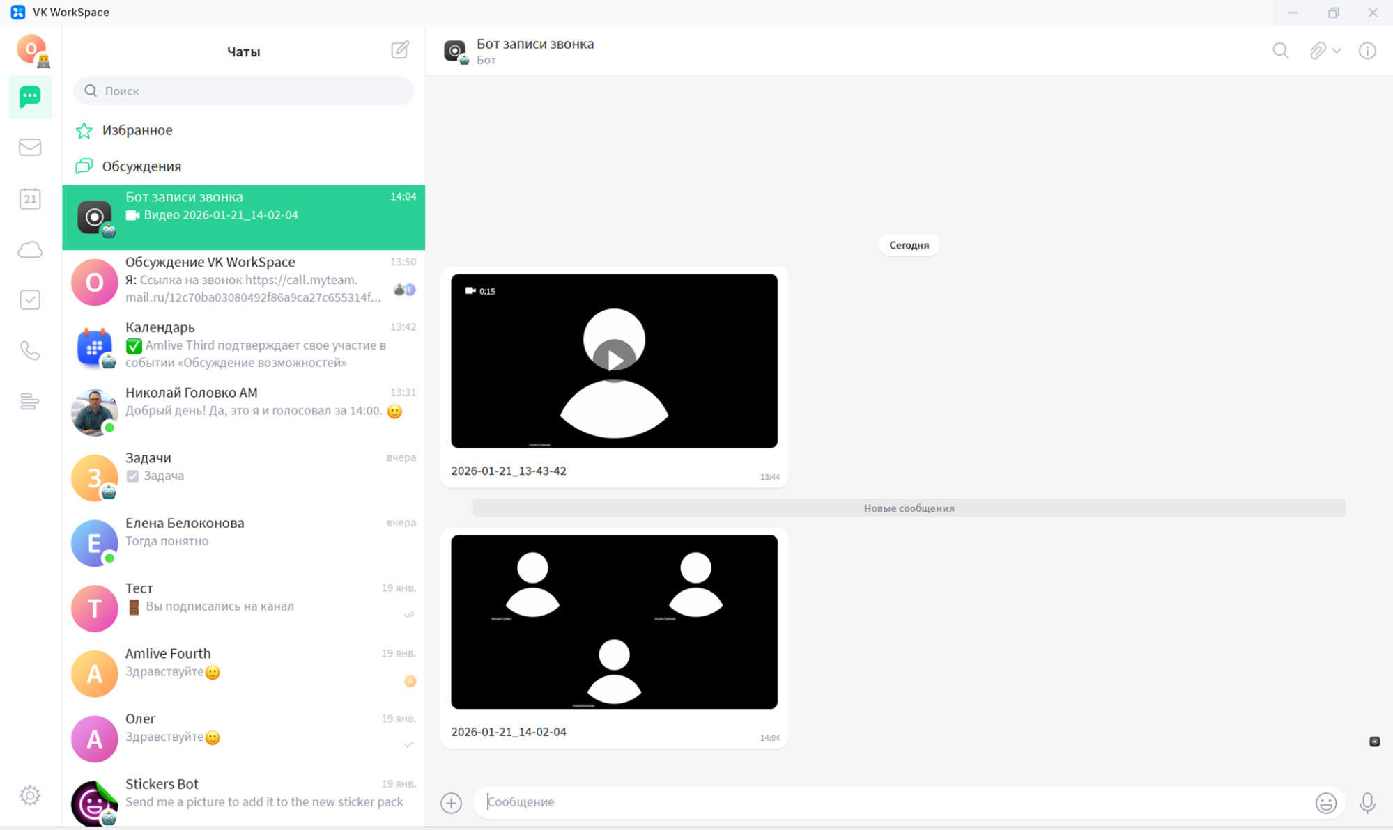 Рисунок 1. Приложение VK WorkSpace на компьютере